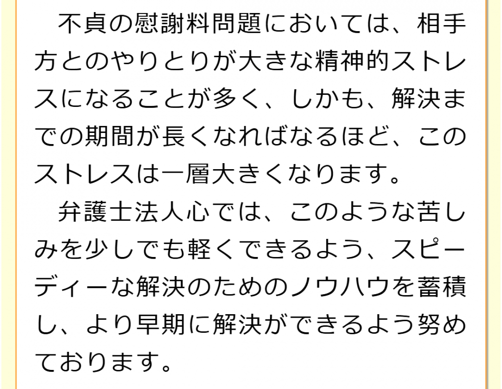 当法人では、不倫慰謝料を請求された場合の対応の仕方や、慰謝料を減額できるかどうかについてなど、弁護士がご相談に乗らせていただきます。